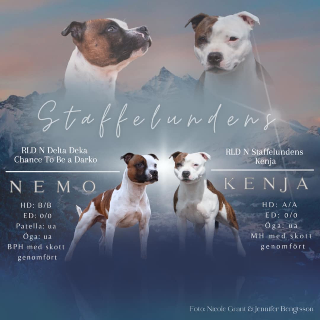 27/9-25 föddes 5 valpar hos Staffelundens Kennel. 4 hanar och 1 tik, en hane föddes som en ängel. Vår Nemo är pappa till kullen.